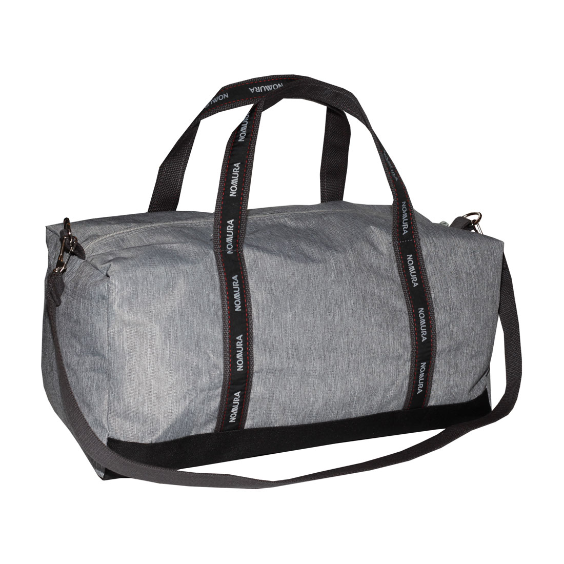 The Country Club Duffle features square ends with convenient side pockets. A splash of color accents the handles and bottom. Heathered canvas with black bottom and charcoal webbing. Your logo ribbon appears on the handles. 18”Lx8.5”Hx8.5”D. Made in USA.